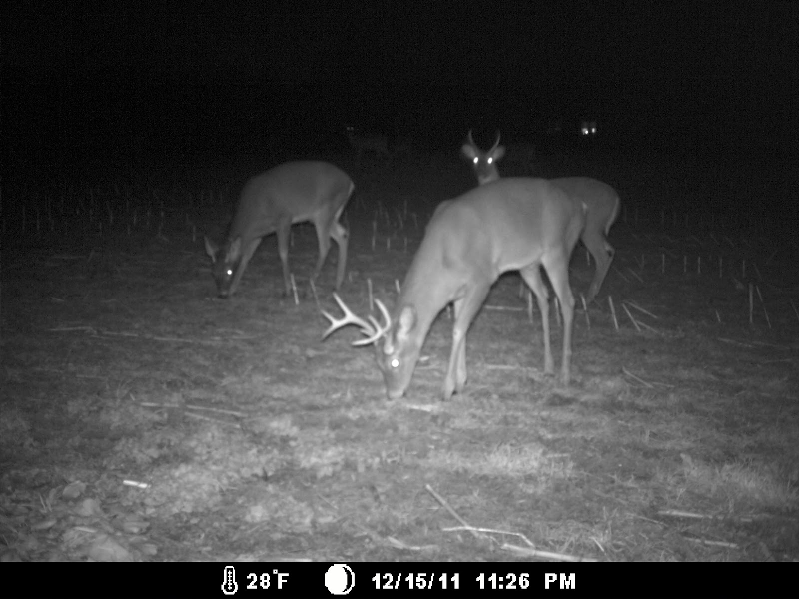 Finally a buck has come out of hiding. I moved one of the cameras down along a creek next to a rye field that I had seen deer coming into right before dark last week. And I finally guessed right. Looks like a nice young 8 pointer along with his buddy a small spike. Also got some pics of a couple of big does. Hopefully after the holidays I can get back into some serious camera trapping.